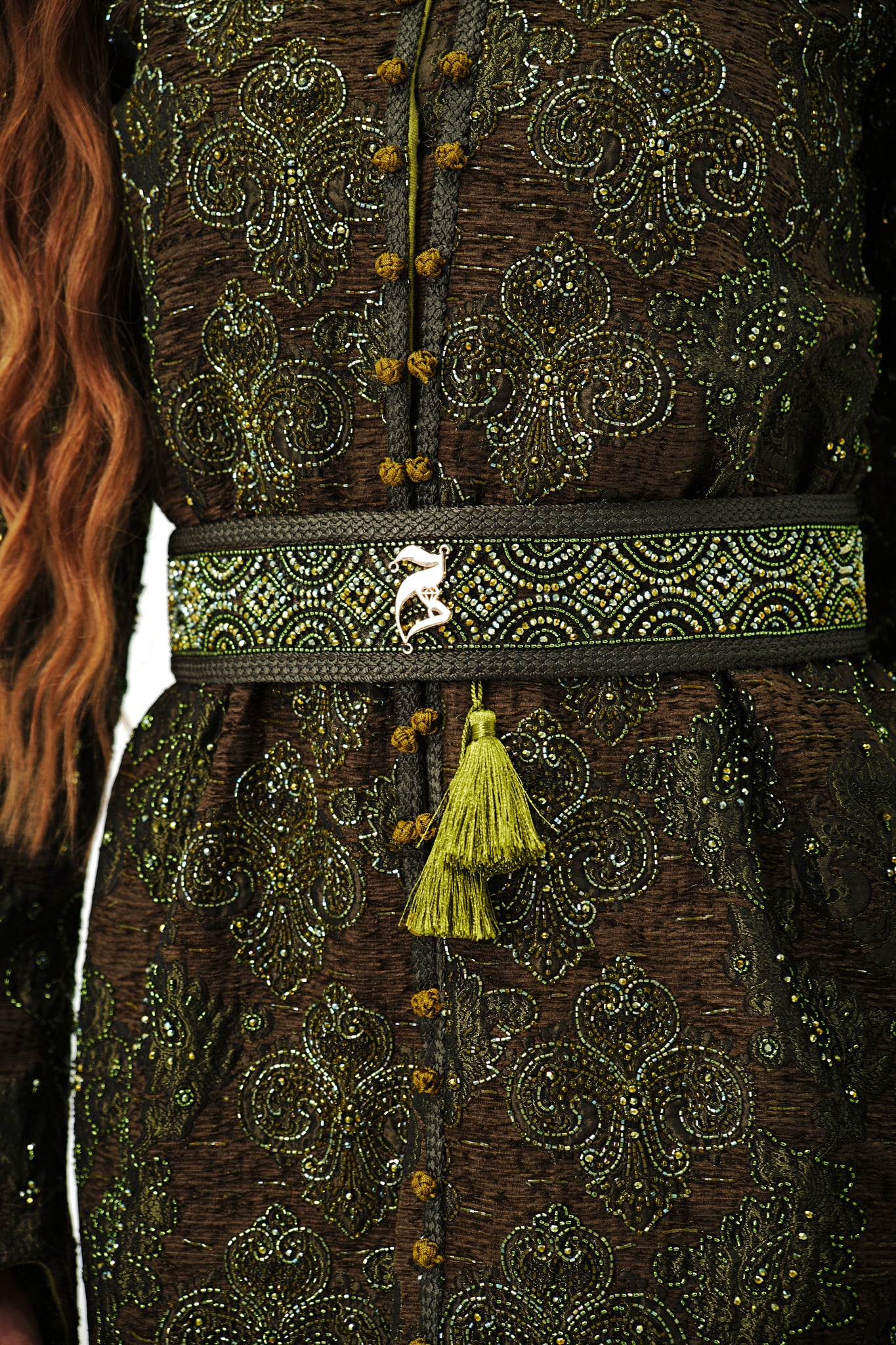 Moroccan Embroidered Abaya Green