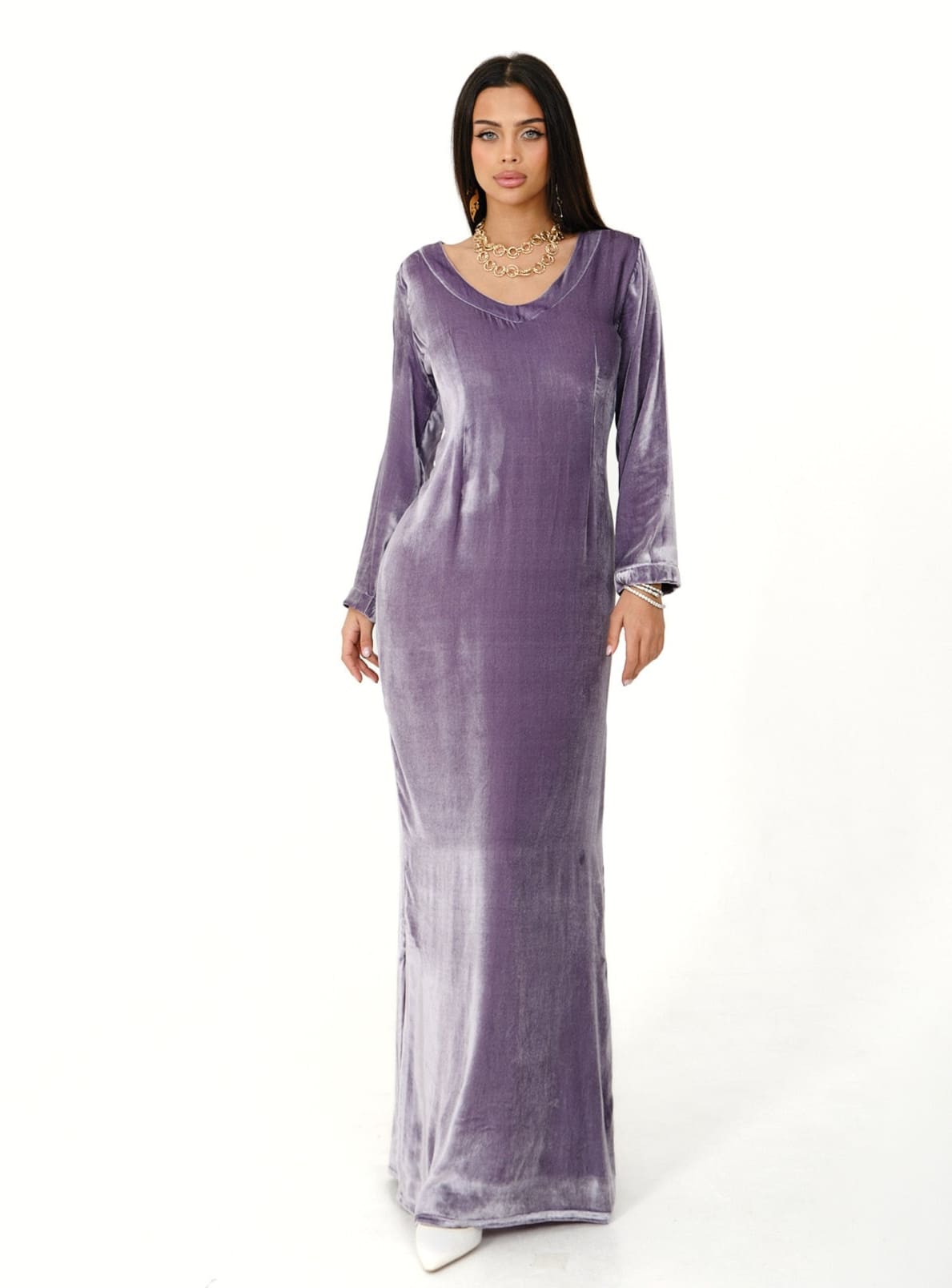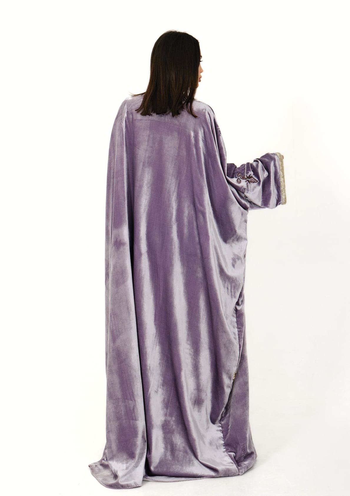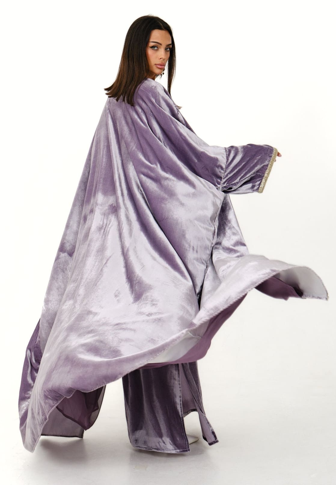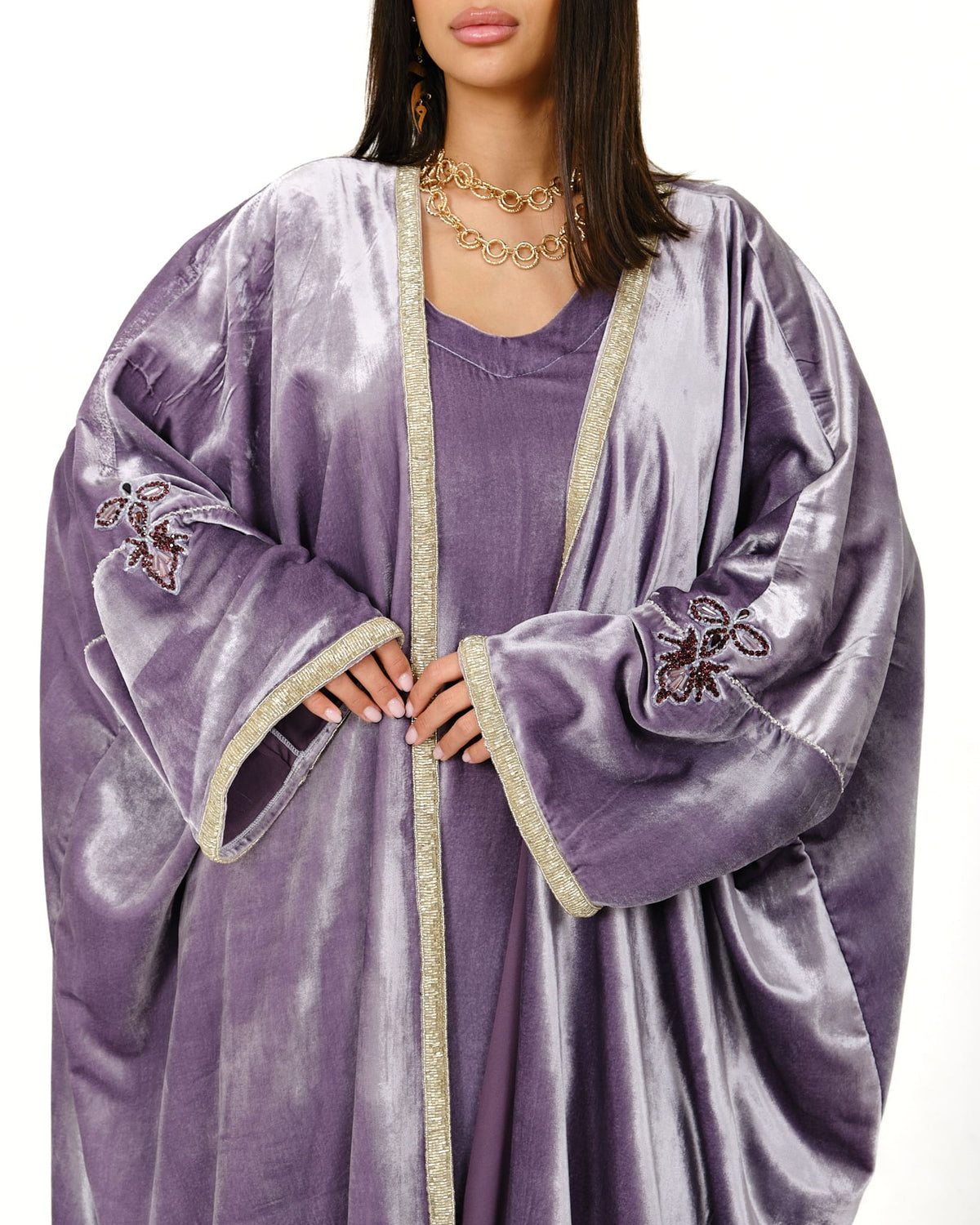 Elevate your elegance with this silk velvet abaya set, a perfect blend of luxury and sophistication. Crafted from premium silk velvet, the abaya drapes beautifully, featuring intricate embroidery on the sleeves and delicate embellishments for a subtle shimmer. Paired with a back-adjustable dress, this set offers both comfort and versatility, making it an ideal choice for special occasions. Effortlessly chic and timeless, it’s a must-have addition to your wardrobe. (Abaya One size - Total length 160cm, Sleeve length from centre back 82cm, Back 124cm, Dress - (Length of dress 152cm ,Sleeve length 56cm, Back 40cm, Waist round maximum width 105cm, Waist round minimum width 72cm, Hip round 120cm). Size model wearing is S/M.
